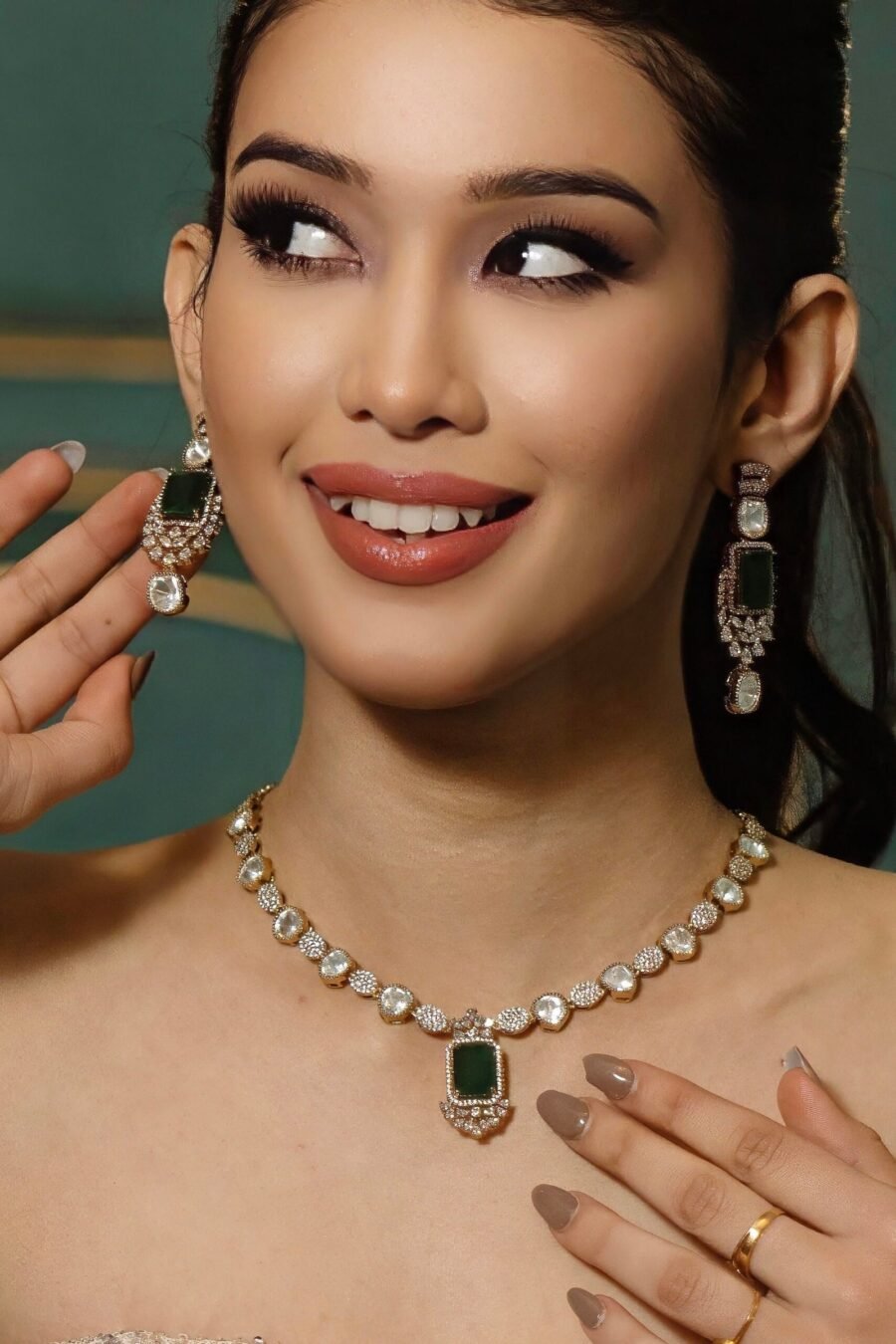 Royal Green Enamel & Kundan Collar Necklace Set – A Minimalist Statement