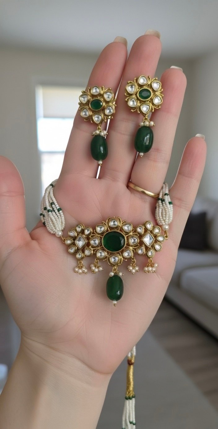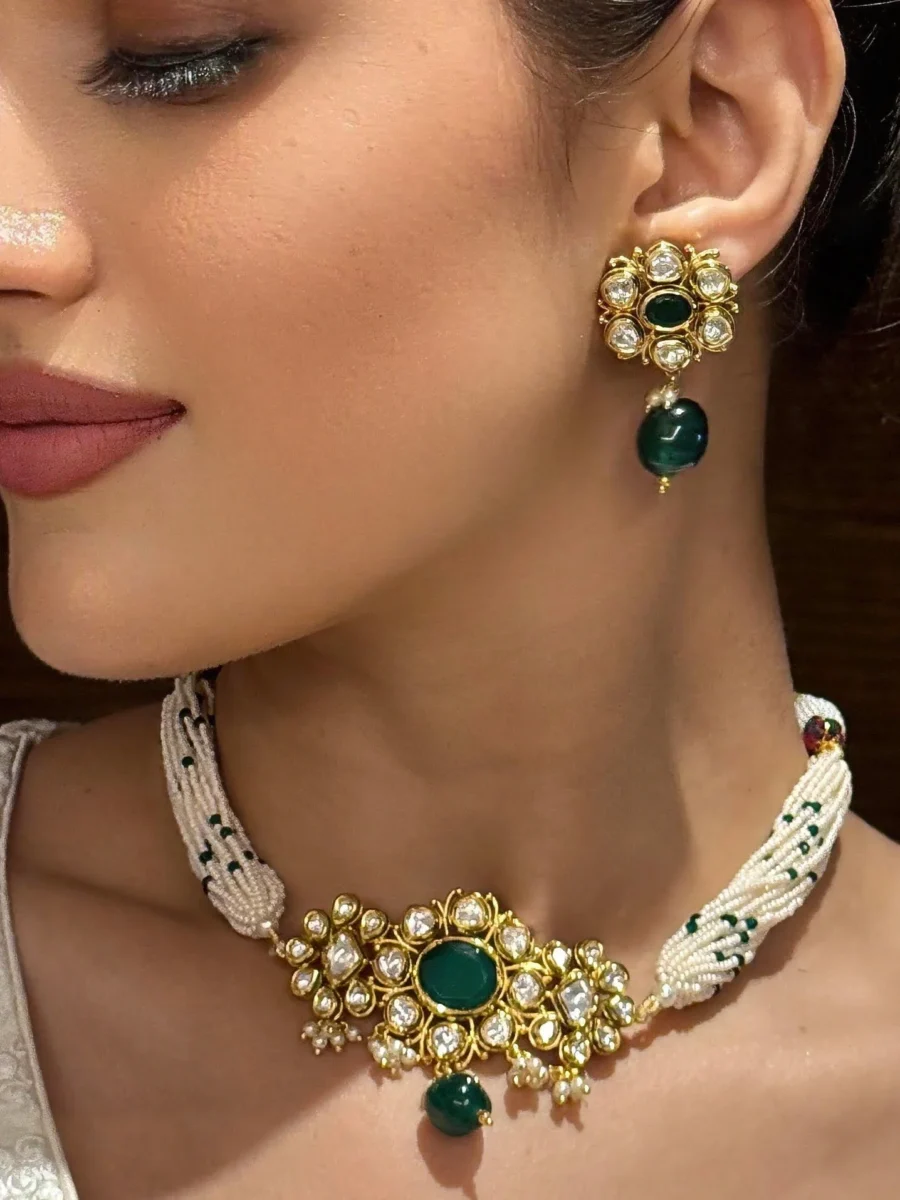 Pearl and Green Stone Choker Set: A Timeless Blend of Grace and Tradition