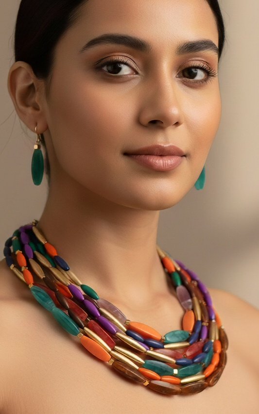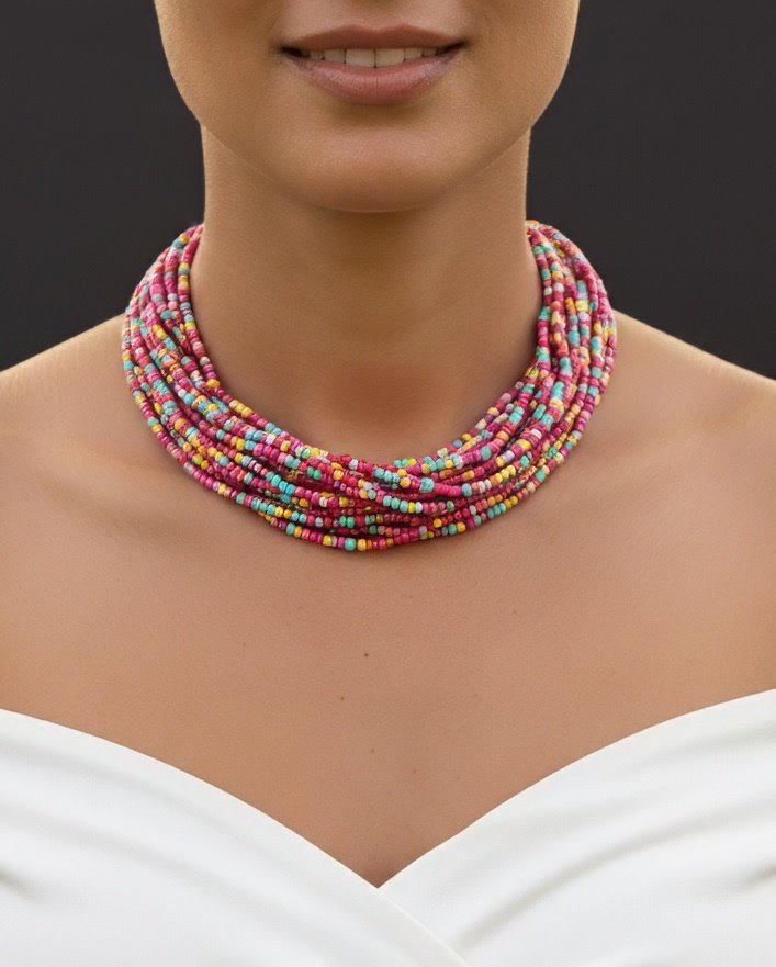 Multistrand Kaleidoscope Beaded Necklace – Handcrafted Festive Statement