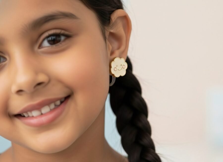 Whimsical Cloud Earring on a Joyful Child