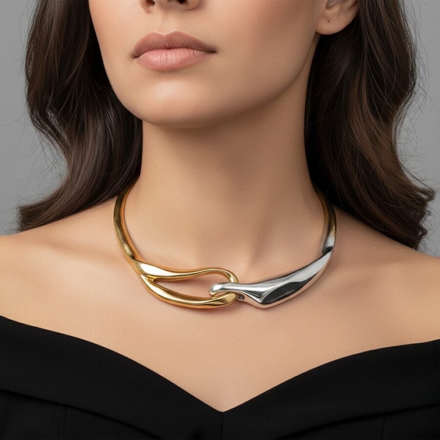 Hip-Hop Geometric Iron Choker – Sculptural Alloy Statement in Dual-Tone Finish