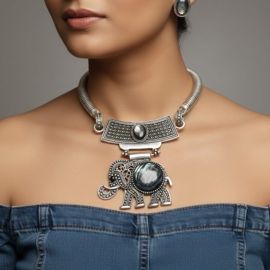 Elephant Charm Necklace & Earring Set – Iridescent Elegance with Ethnic Soul