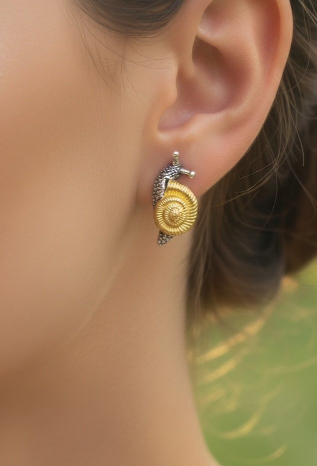 Nature-Inspired Snail Earring on Ear Close-Up