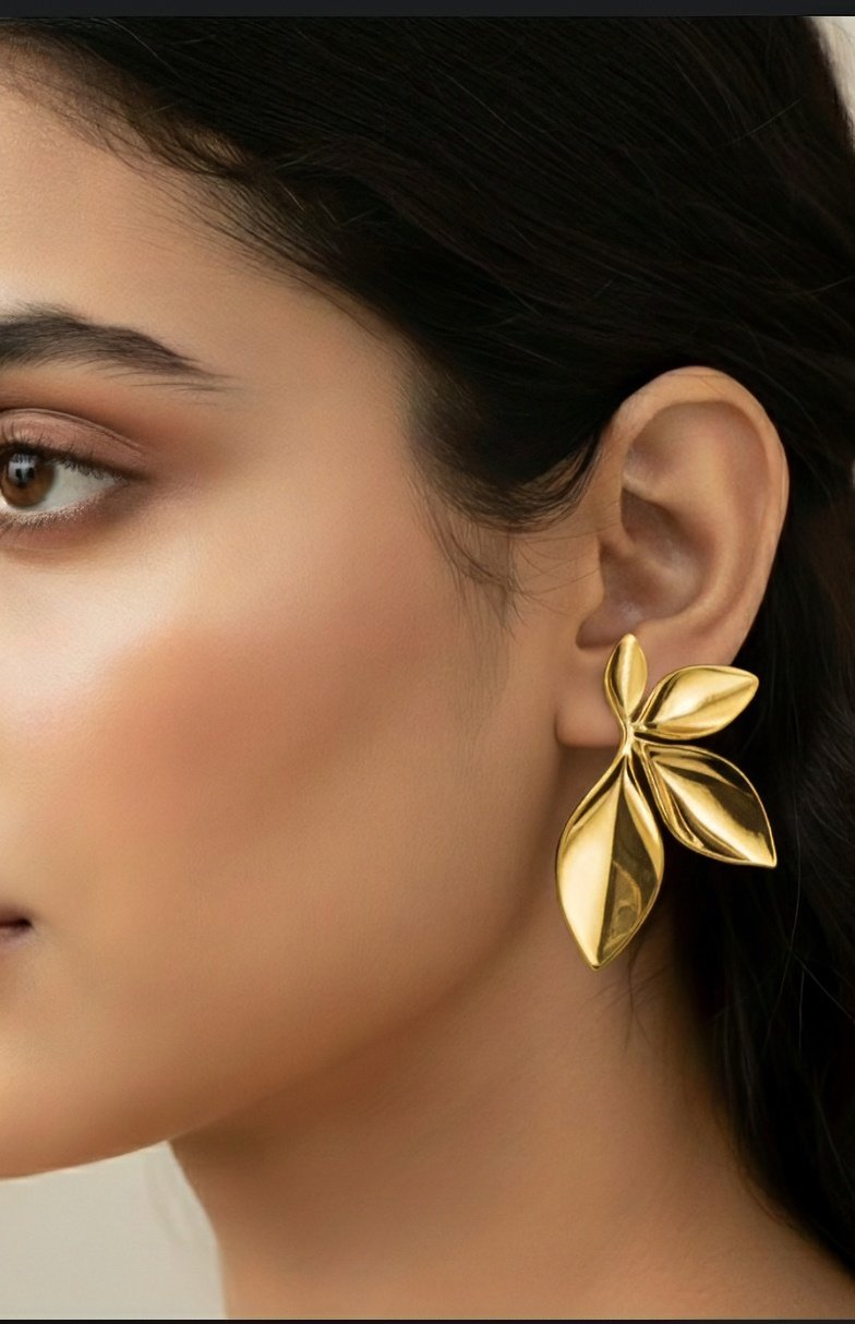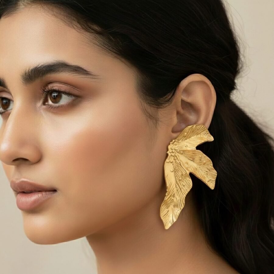 Textured Gold Leaf Statement Earring – Sculptural Alloy Elegance with Botanical Flair
