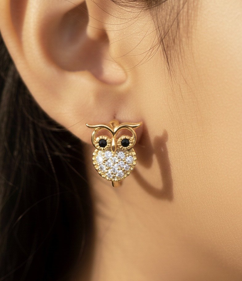 Twilight Wisdom Owl Earrings with 18K Gold