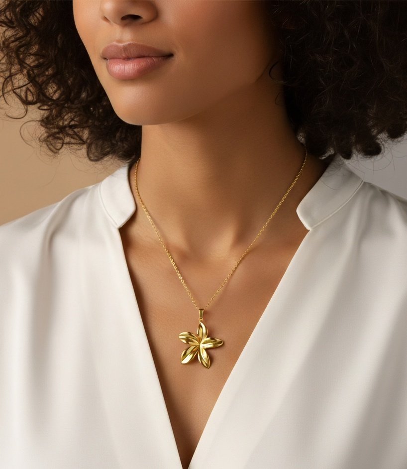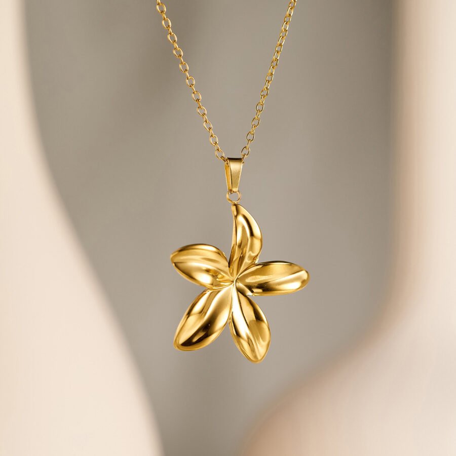 Real Gold Plated Waterproof Stainless Steel Flower Pendant Necklace