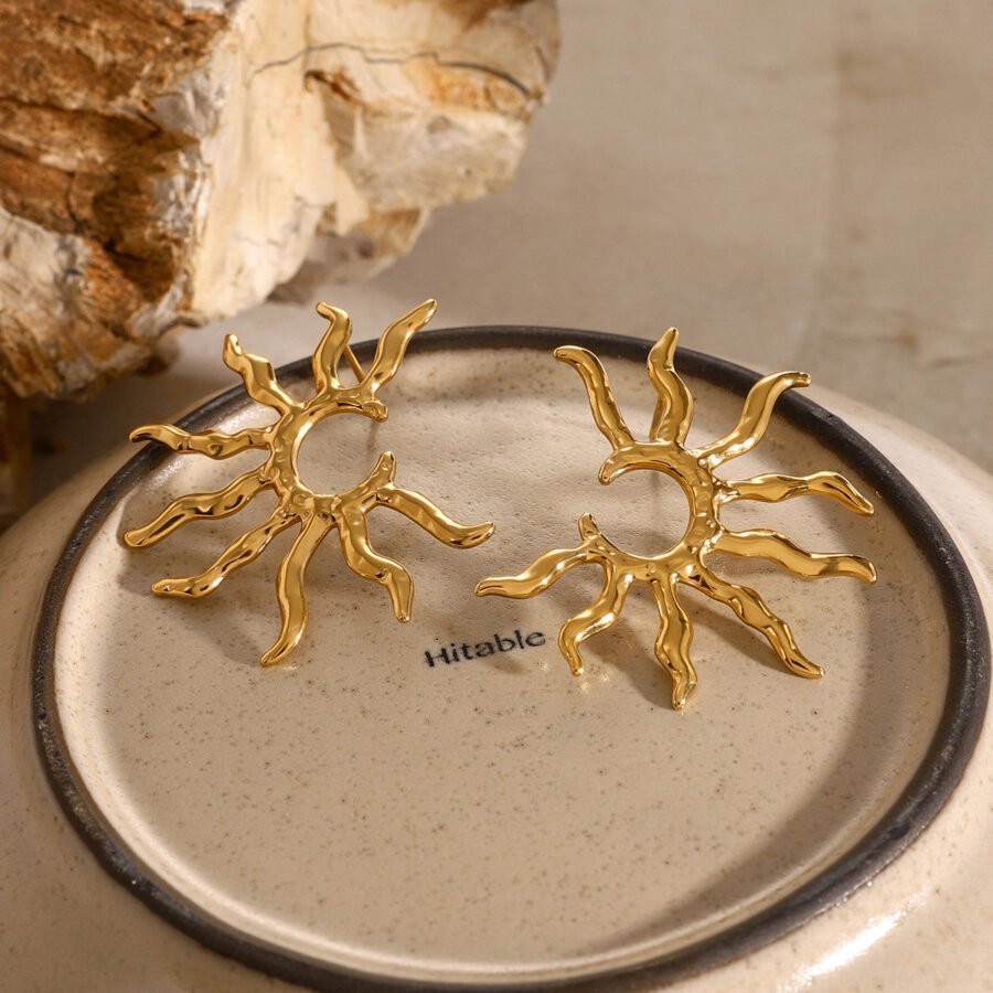 Solar Halo Earrings – Gold-Tone Stainless Steel Suns (Waterproof & Hypoallergenic)