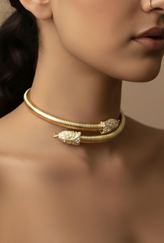 Gold Snake Choker – Sculptural Elegance in Alloy