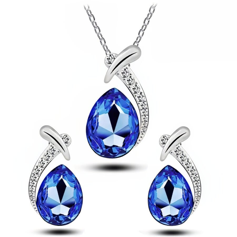 Royal Blue Teardrop Gemstone Necklace & Earring Set
