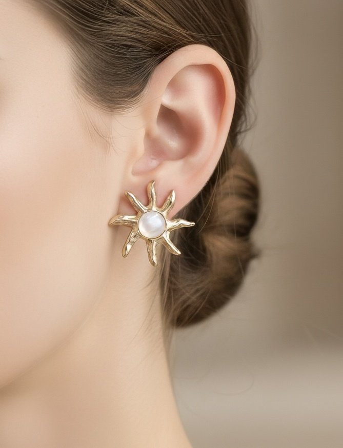Celestial Pearl Sunburst Earring