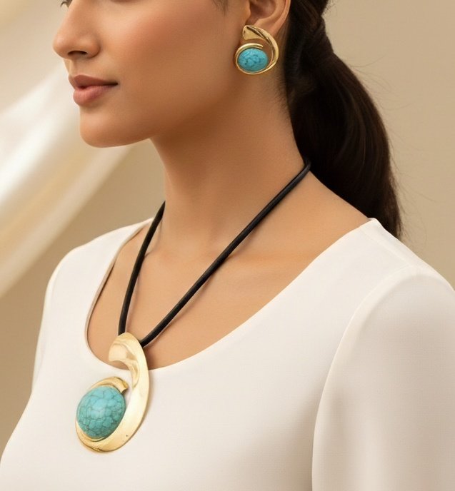 Turquoise & Pearl Resin Beaded Jewelry Set – Elegant Alloy Craft with Gold Accents