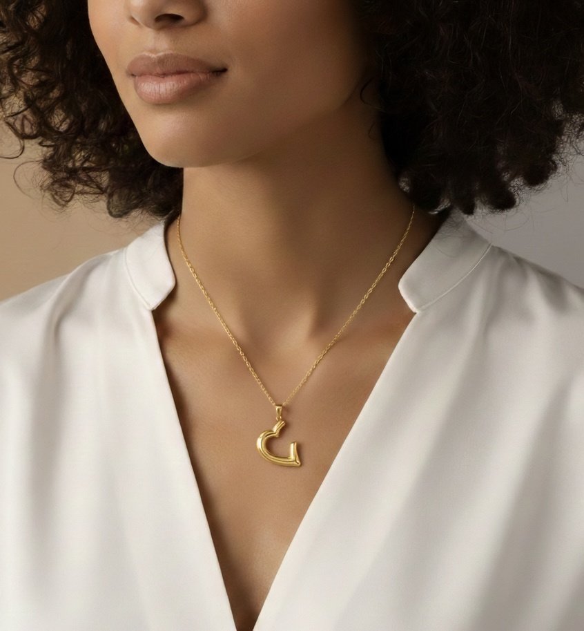 Arabic Heart Pendant Necklace in Stainless Steel with Real Gold Plating