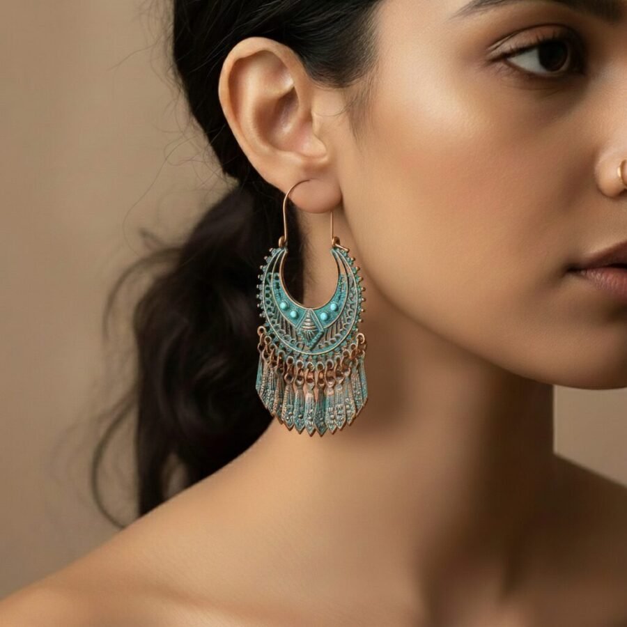 Bohemian Turquoise Tassel Earring – Ethnic Alloy Elegance with Artistic Detail