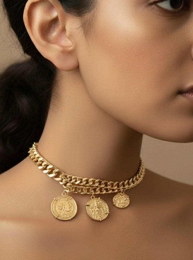 Gold Coin Choker Necklace – Regal Alloy Statement with Cultural Flair