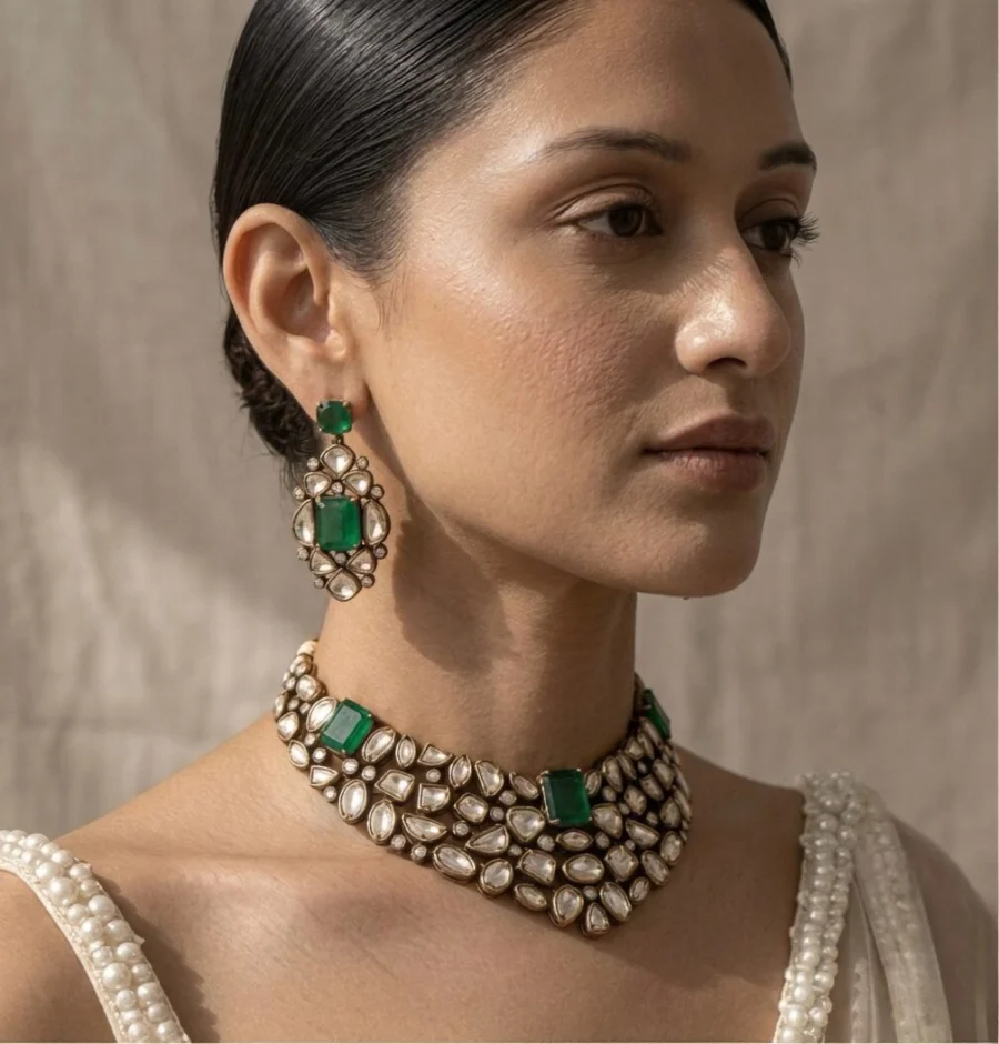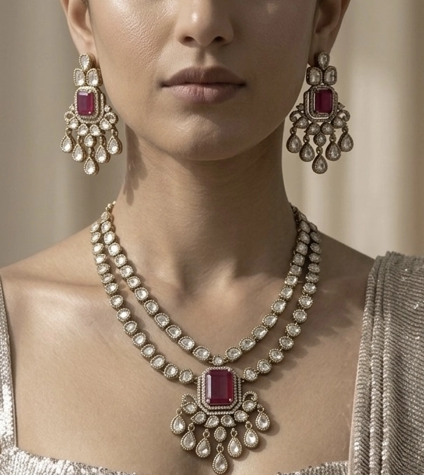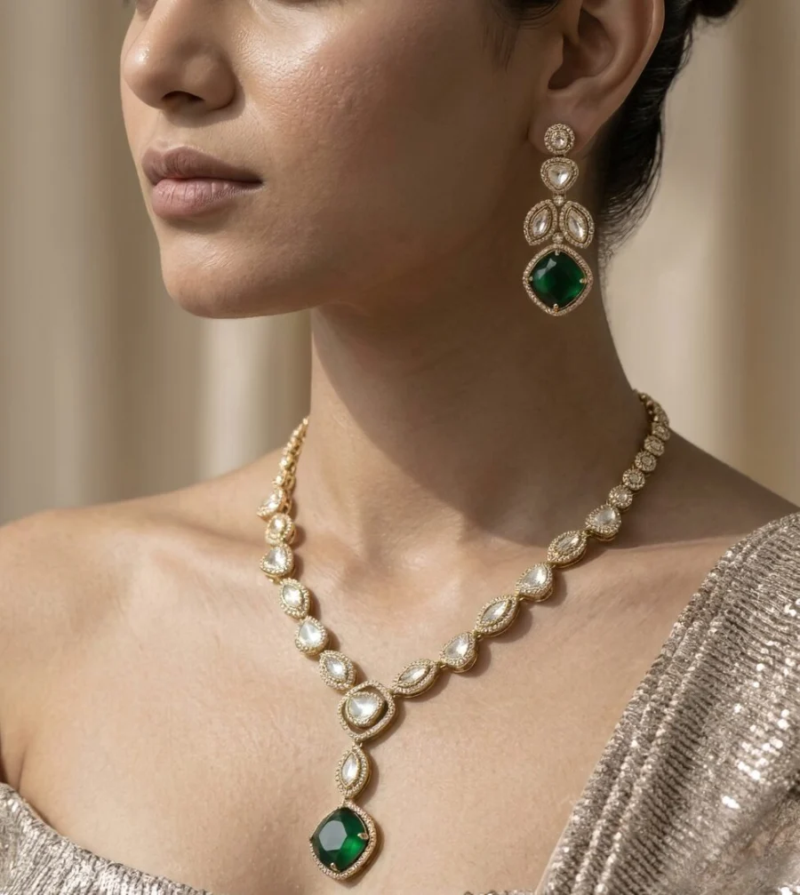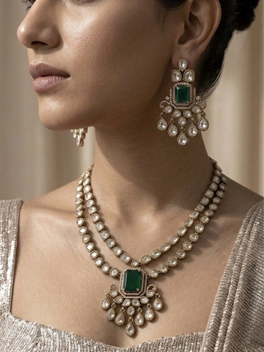 Crafted for women who love timeless elegance and statement luxury, this set instantly elevates any look — festive, bridal, or evening.