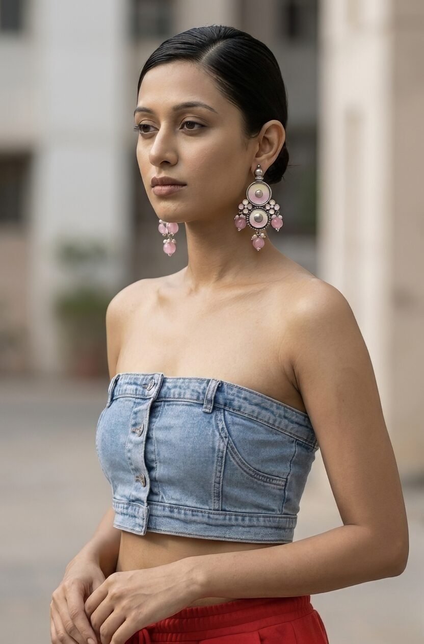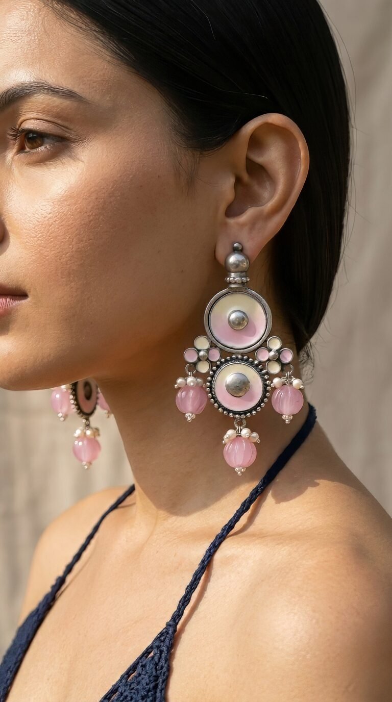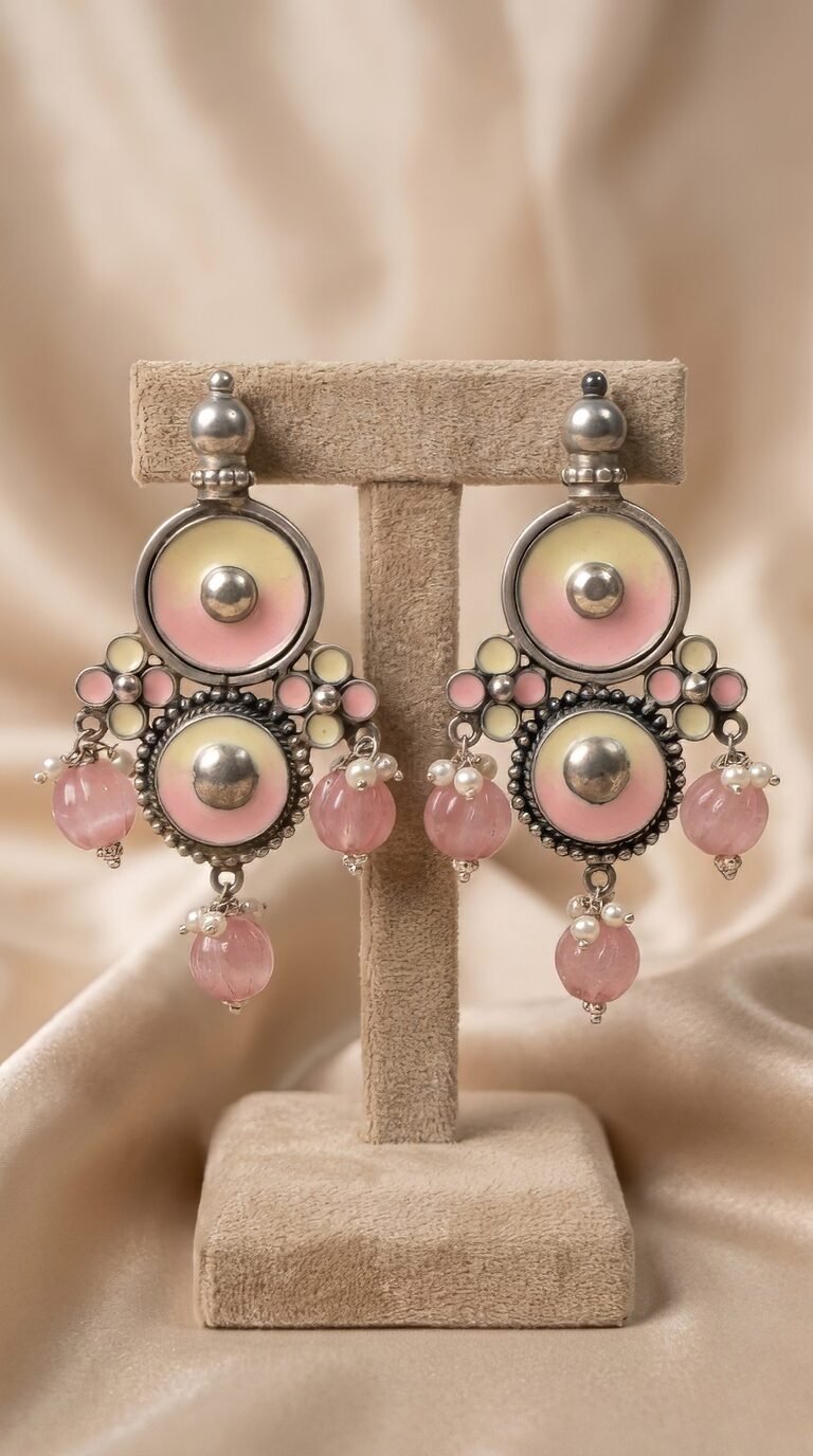 925 Silver Amrapali Pink Drop Earrings – Heritage Statement Design