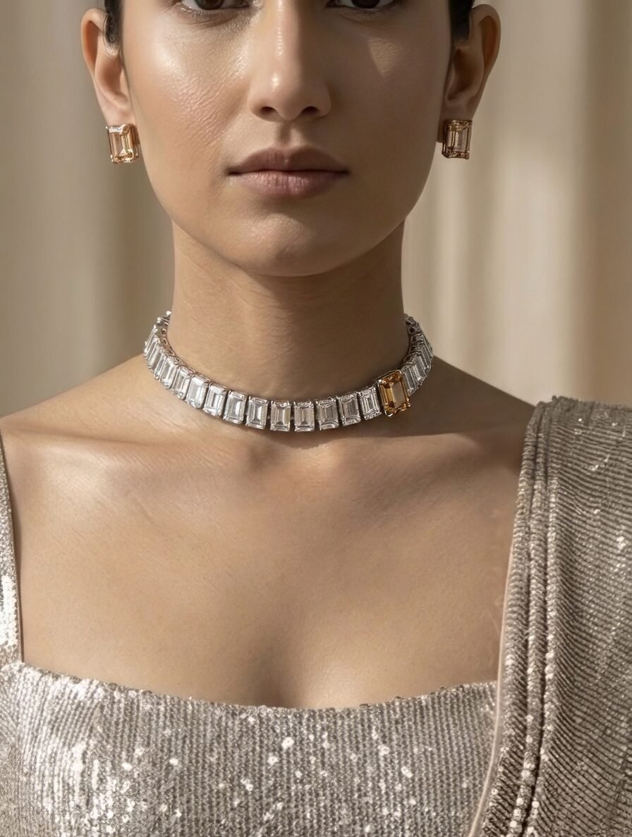 Baguette Diamond Look Choker Set – Luxe Evening Edit
