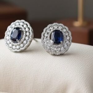 Elegant Navy Blue & Silver Floral Clip-On Earring