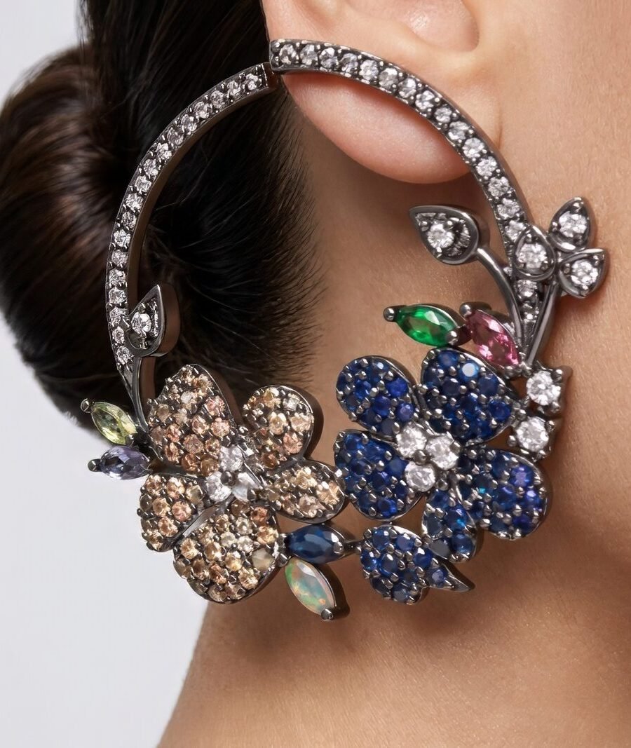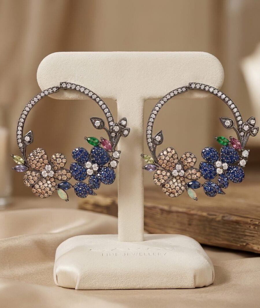 Floral Crystal Hoop Earrings – A Sparkling Fusion of Elegance & Charm
