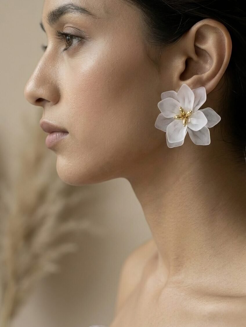 Floral Statement Earrings with Layered Petals and Sparkling Accents