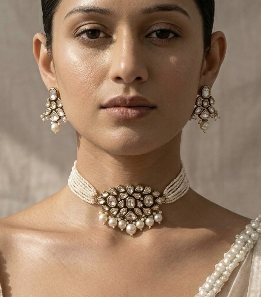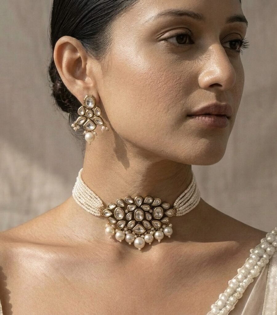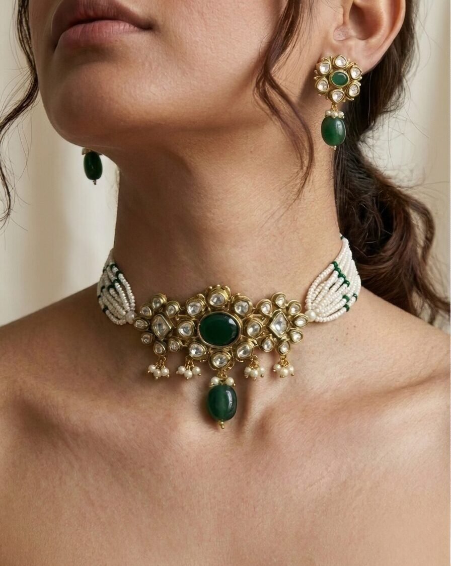 Gold-Plated Handcrafted Kundan & White Pearls Choker