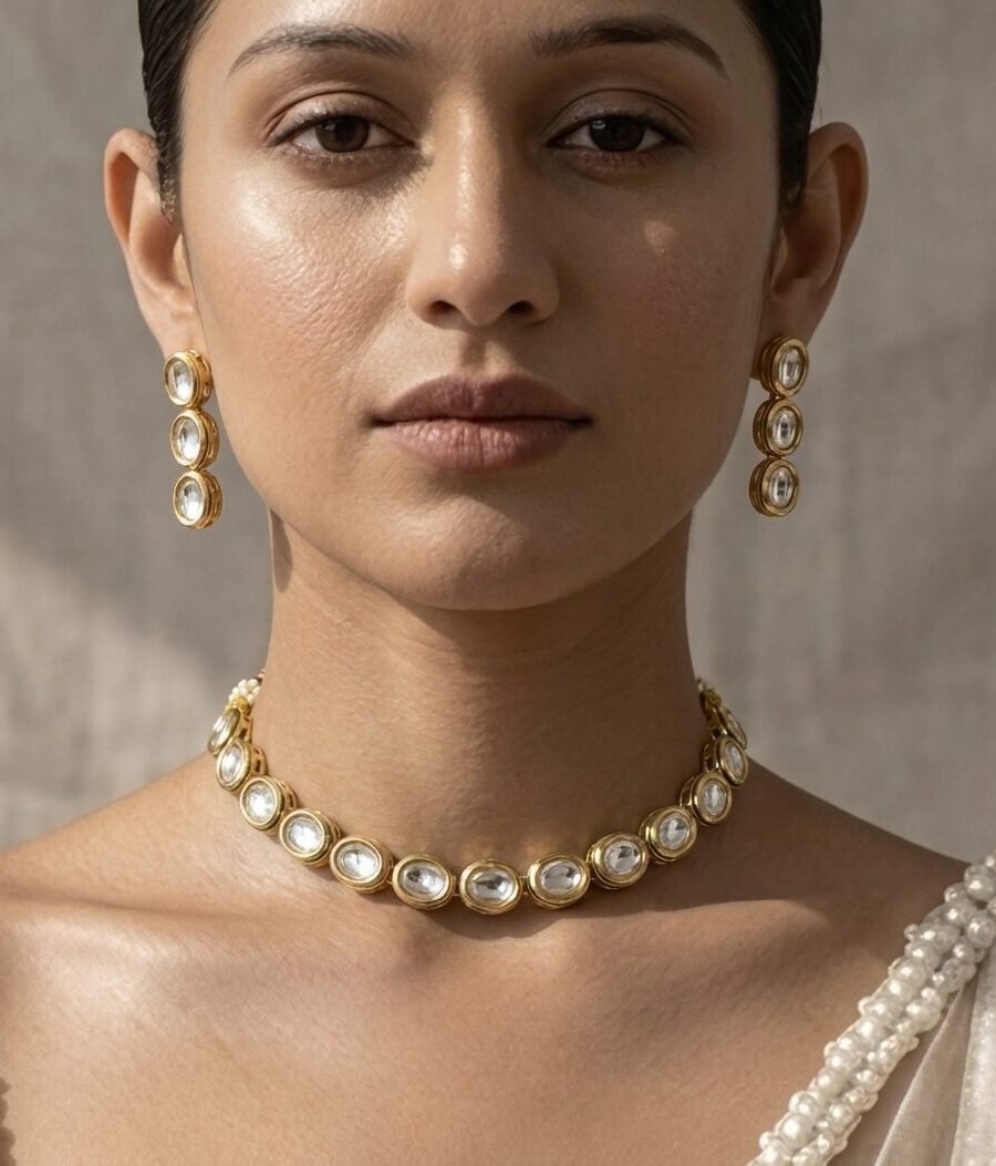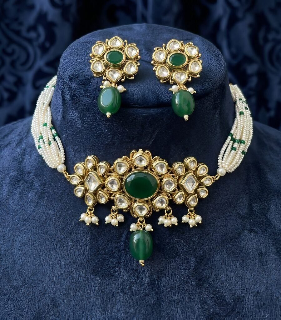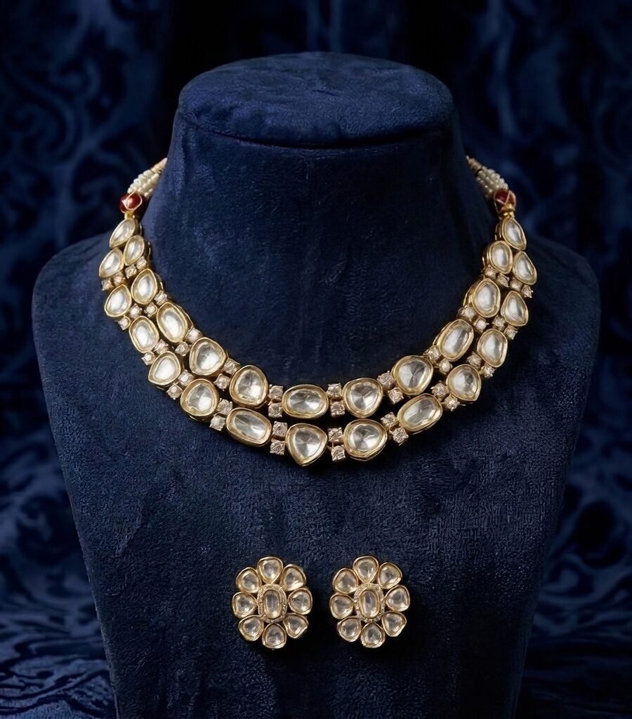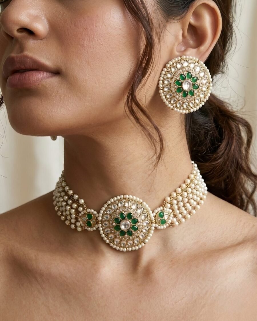Gold-Plated Handcrafted Kundan & White Pearls Choker