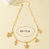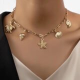 Inspired by the rhythm of the tides and the treasures of the shore, this gold-toned charm necklace evokes the serenity and spirit of seaside wanderings. Suspended from a sleek chain, five intricately crafted charms bring the ocean to life: