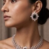 Its bold yet graceful design pairs beautifully with sarees, gowns, lehengas, cocktail dresses, and Indo-western outfits, making it an essential statement piece for your premium jewellery collection.