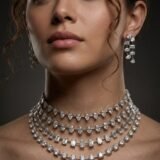 Its luxurious layered silhouette pairs effortlessly with sarees, gowns, cocktail dresses, and couture-inspired fusion styling, making it an essential piece for your premium jewellery wardrobe.