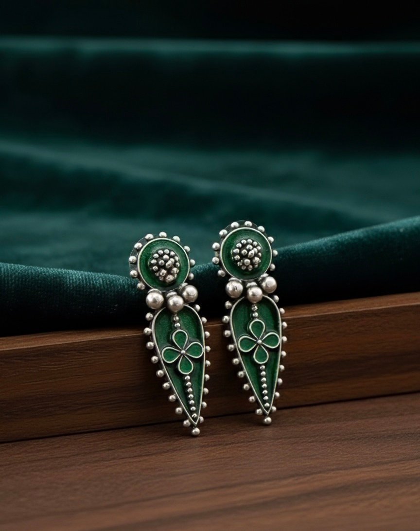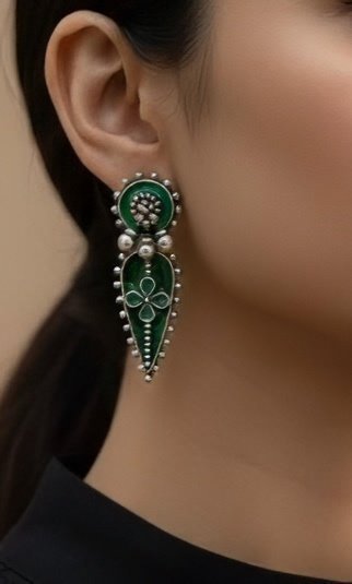 The metallic finish gleams with every movement, and the spiral-inspired arrangement of the rays adds depth and artistic flair. Worn with a sleek bun and minimalist attire, the earring becomes a radiant focal point—ideal for festive occasions, editorial styling, or adding drama to everyday looks.