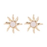 Radiating elegance and cosmic symbolism, this statement earring captures the brilliance of the sun in a stylized, sculptural form. The centerpiece—a luminous pearl-like gem—anchors the design with softness and grace, while gold-toned rays extend outward in irregular, dynamic lines, evoking warmth, vitality, and celestial motion.