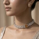 Its clean geometric design pairs effortlessly with sarees, gowns, cocktail dresses, and contemporary fusion styling, making it an essential piece for your premium jewellery wardrobe.