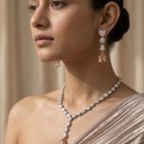 Crafted with premium silver rhodium finishing and high-grade AD / CZ stones, this set delivers exceptional sparkle and a soft luxe glow—perfect for cocktail nights, receptions, bridesmaids, evening parties, engagement celebrations, and destination wedding looks.