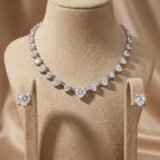 Add this crystal heart tennis necklace set to your cart and complete your most graceful romantic look.