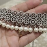 Get ready to dazzle with the CZ Falling Pattern Choker Set. It’s designed with sparkling CZ stones and pretty pearls, making it a perfect choice to elevate your modern style effortlessly.
