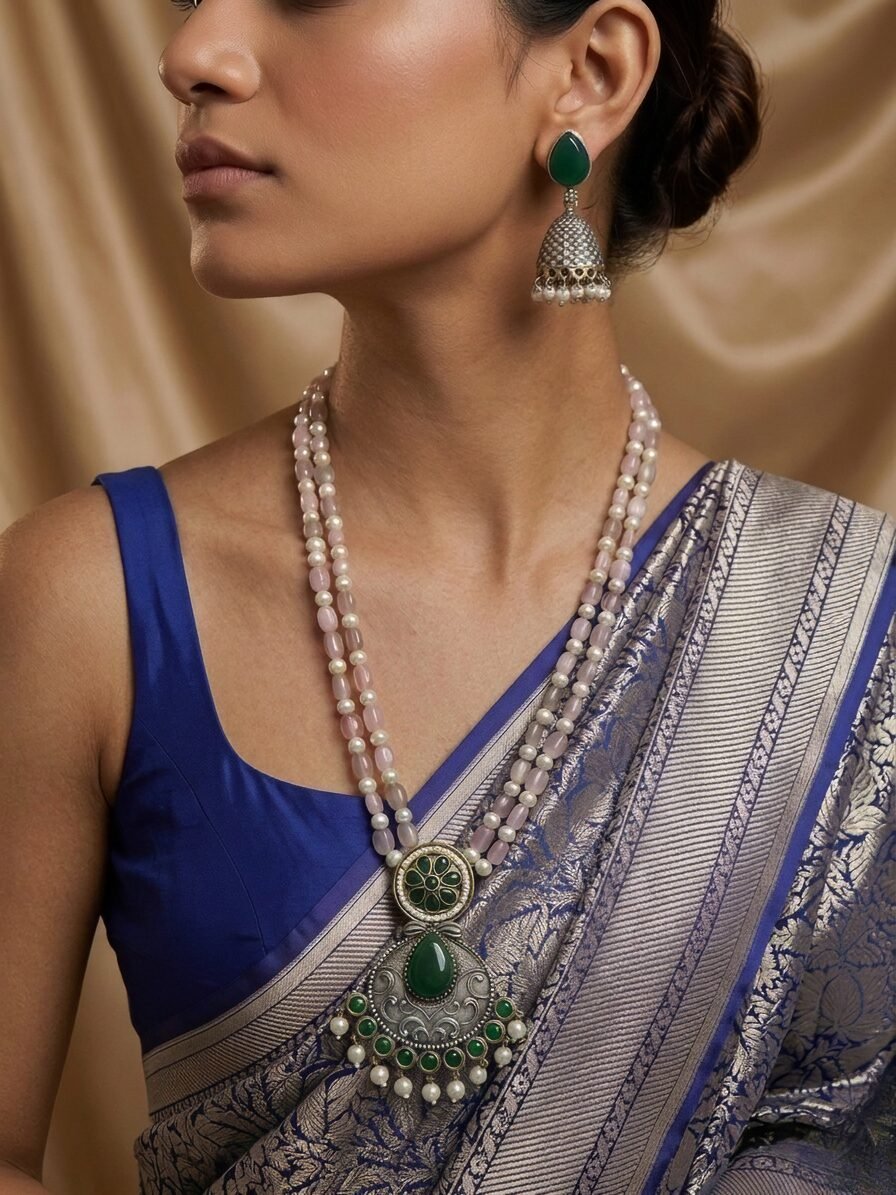 - Fusion Wear: Style this necklace with a white or beige linen kurta and wide-leg pants for an Indo-Western twist. Add a sleek bun and light makeup to complete the outfit.