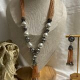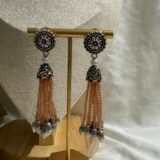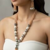 Be the first to review “Ethereal Grace – Peach Beaded Pearl Necklace & Tassel Earring Set”
