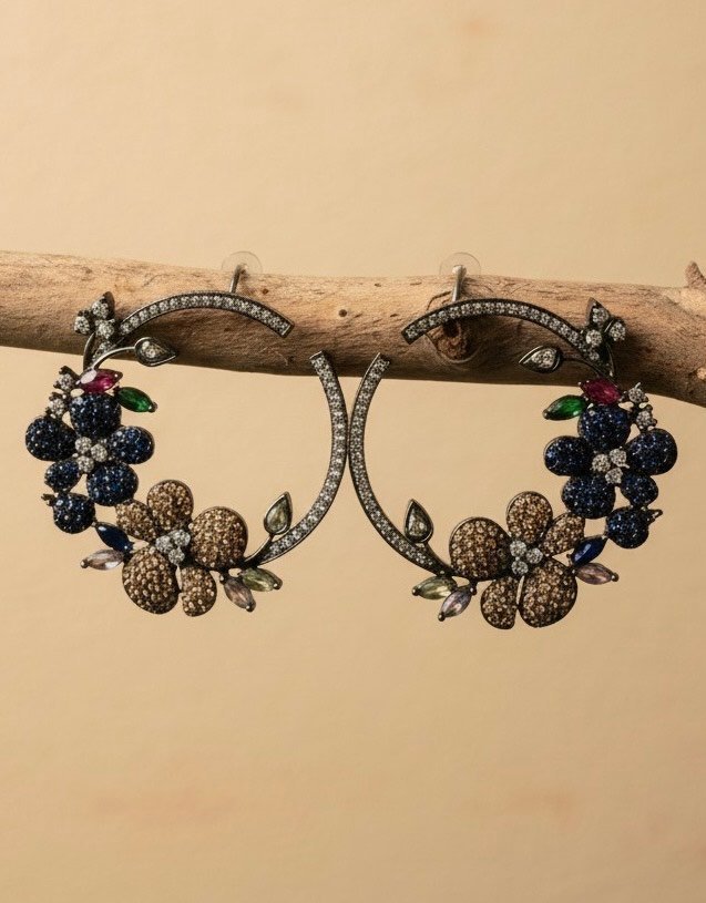 Floral Crystal Hoop Earrings – A Sparkling Fusion of Elegance & Charm – Shivanshri