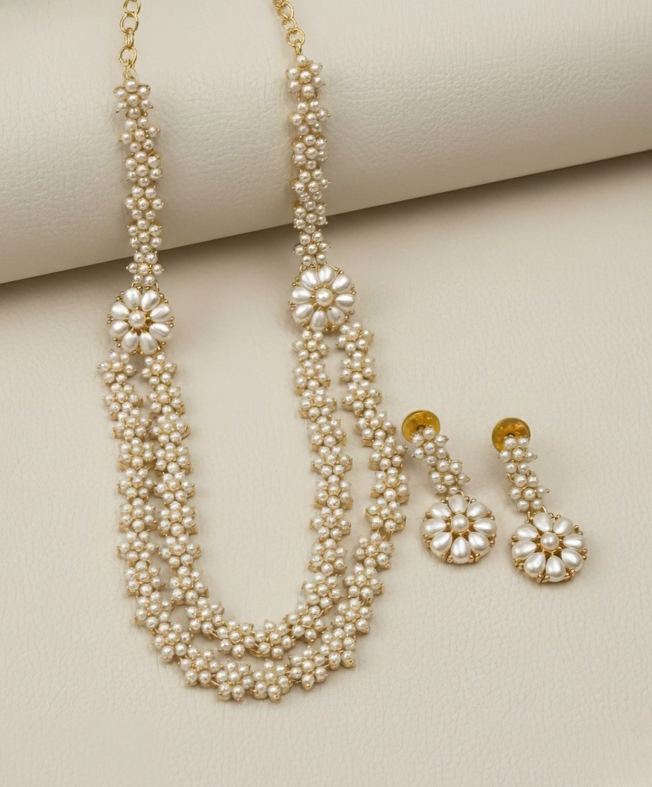 Wear this sophisticated pearl necklace to formal events such as galas, weddings, or black-tie dinners to make a statement of refined elegance. It’s also an excellent choice for upscale cocktail parties, fancy dinners, or any occasion where you want to exude sophistication and grace. Pair it with a saree or an elegant evening gown to complete your look with understated glamour and timeless style.