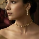 A statement of refined sophistication, this choker set features luminous oval-shaped gemstones, each encased in radiant gold settings that exude timeless charm. The necklace’s graceful alignment of oval stones creates a fluid rhythm across the neckline, offering both elegance and versatility.