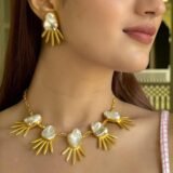 Step into contemporary luxury with our Golden Glow Baroque Pearl Necklace Set, featuring bold baroque pearls encased in radiant golden accents. This artistic set, paired with matching statement earrings, is designed for those who love to make a bold yet elegant statement.