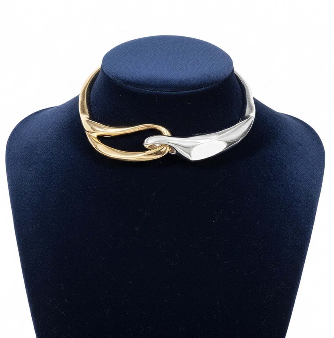 Make a fearless fashion statement with this Hip-Hop Exaggerated Geometric Choker, crafted from durable iron alloy and finished in striking dual-tone metallics. Featuring oversized, fluid interlocking links in gold and silver, this piece blends urban edge with avant-garde artistry. The asymmetrical design and bold silhouette channel the energy of street style while offering a high-fashion twist. Lightweight yet impactful, this choker is perfect for women who embrace expressive, sculptural accessories.