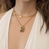 The intricately designed gold-plated tiger head locket, features a striking tiger head motif in a golden hue. Suspended from a delicate chain, it exudes elegance and refinement, enhanced by its anti-tarnish finish for lasting beauty