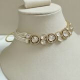 Indulge in timeless elegance with our exquisite choker necklace, meticulously crafted from a harmonious fusion of pearls, Kundan, and CZ stones. Enhanced by CZ stones, it radiates refined charm and glamorous allure, effortlessly elevating any ensemble with grace and style. Make a statement with this standout accessory that exudes effortless sophistication.