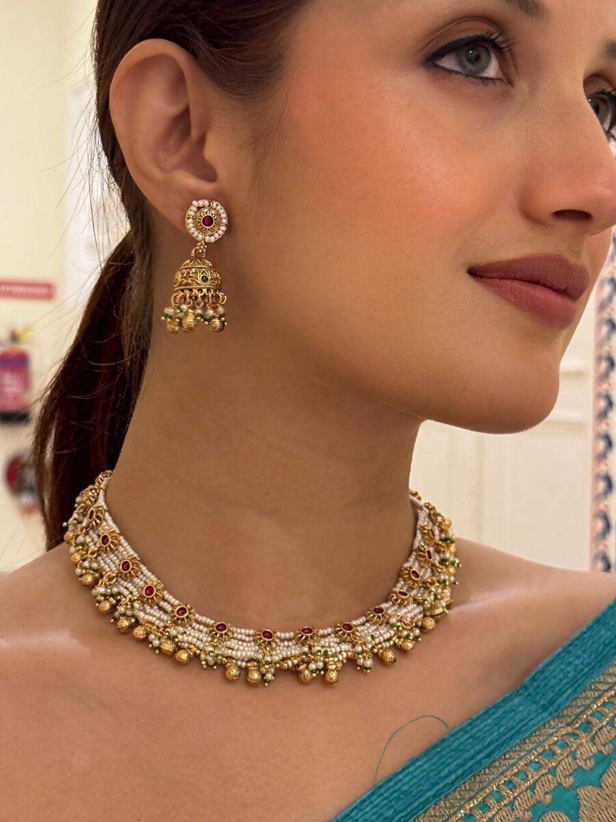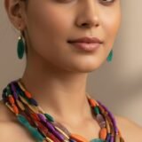 Make a bold style statement with this Multicolor Resin & Pearl Beaded Necklace Set, designed to celebrate color, texture, and individuality. The necklace features layered strands of elongated resin beads in rich hues—green, purple, orange, red, blue, and gold—interspersed with lustrous faux pearls for a touch of classic elegance. Paired with minimalist drop earrings featuring a single green bead, this set offers a perfect balance of vibrancy and sophistication. Crafted from high-quality resin and alloy, it’s lightweight, skin-friendly, and ideal for women who love expressive fashion.