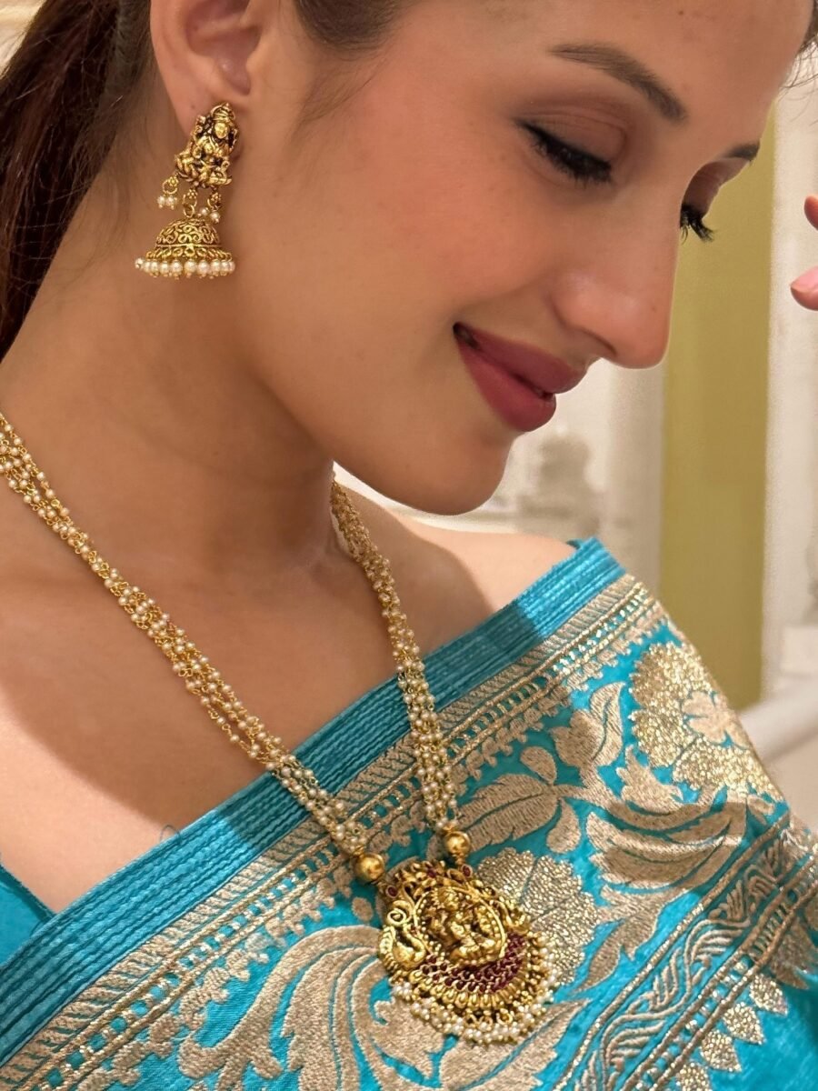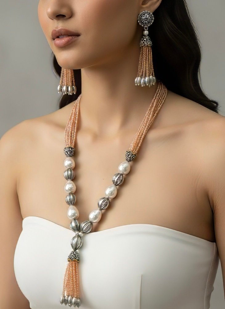 - Hair & Makeup Tips: Opt for open waves or a high bun to highlight the neckline. Use warm-toned makeup or a pop of color on the lips to echo the beads.