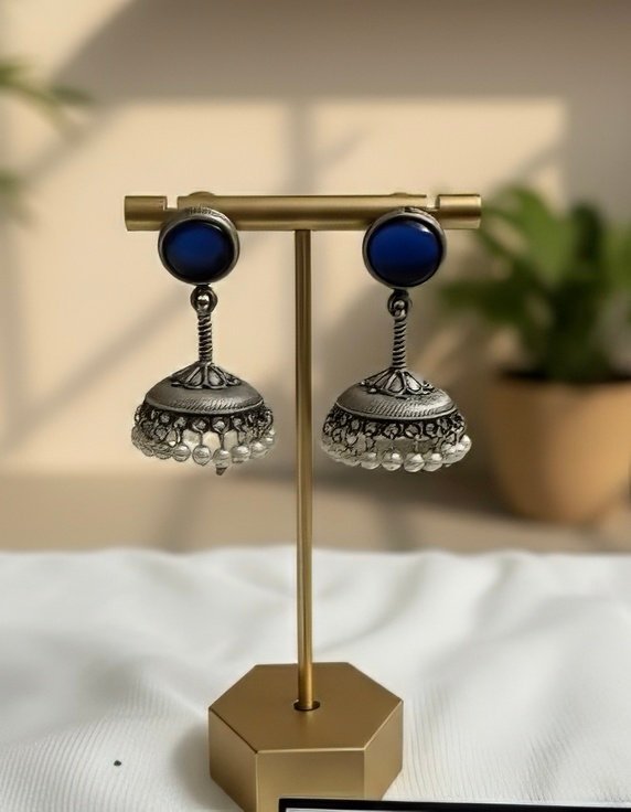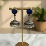 • Earrings: Lightweight jhumkas with an elegant blue stone
