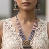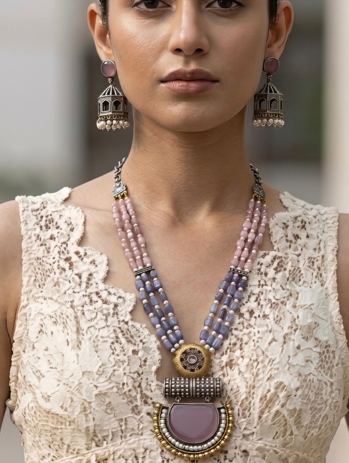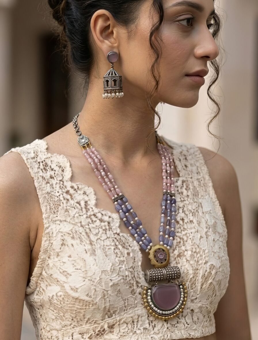 - Handcrafted Dual-Tone Necklace with elegant lavender & pink beads