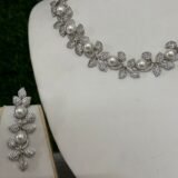 Introducing our elegant Rhodium Plated Zirconia Necklace Set. This stunning set features dazzling zirconia stones complemented by pearls, adding sophistication to any look. Crafted with attention to detail, its sleek design offers a refined aesthetic. Complete your ensemble with matching earrings. Elevate your style with this versatile jewelry set a must-have addition to your collection. The adjustable chain ensures a perfect fit allowing the necklace to sit gracefully on your neckline