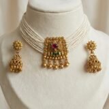 This heritage-inspired pearl choker pairs beautifully with traditional silk sarees, lehengas, or Anarkalis, making it a must-have accessory for weddings, cultural gatherings, and temple visits. Whether you’re a bride, a bridesmaid, or a jewelry connoisseur, this choker promises to bring out the inner queen in you.